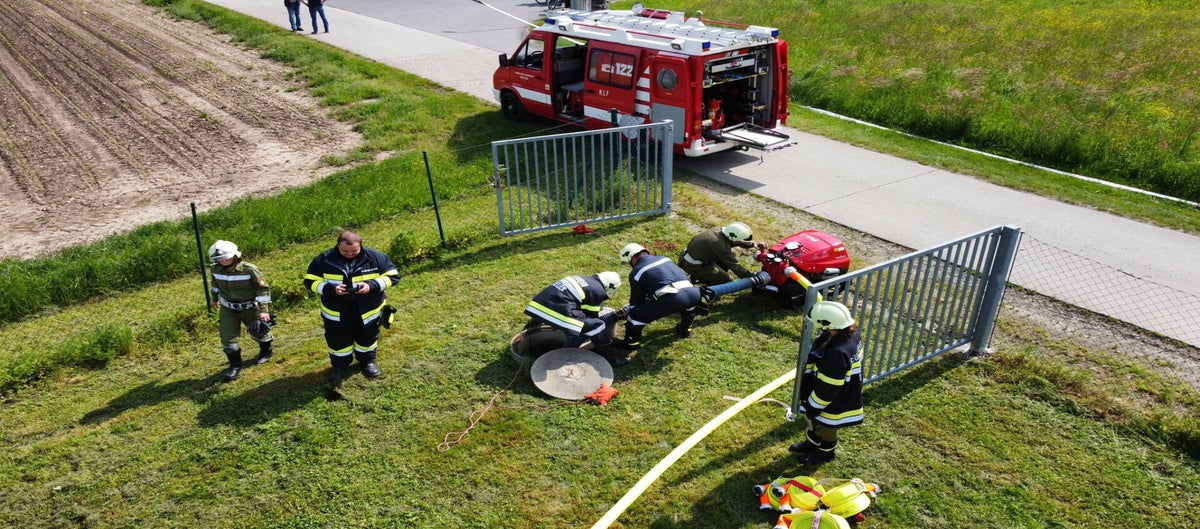 Trotz der einsatzreichen letzten Tage wurde die geplante Übung bei der Bioenergie Halbenrain am 20. Mai durchgeführt. Um 15:06 Uhr wurden die Freiwilligen Feuerwehren Halbenrain, Dietzen, Oberpurkla und Weixelbaum zu einem Brand mit 3 vermissten Personen alarmiert.