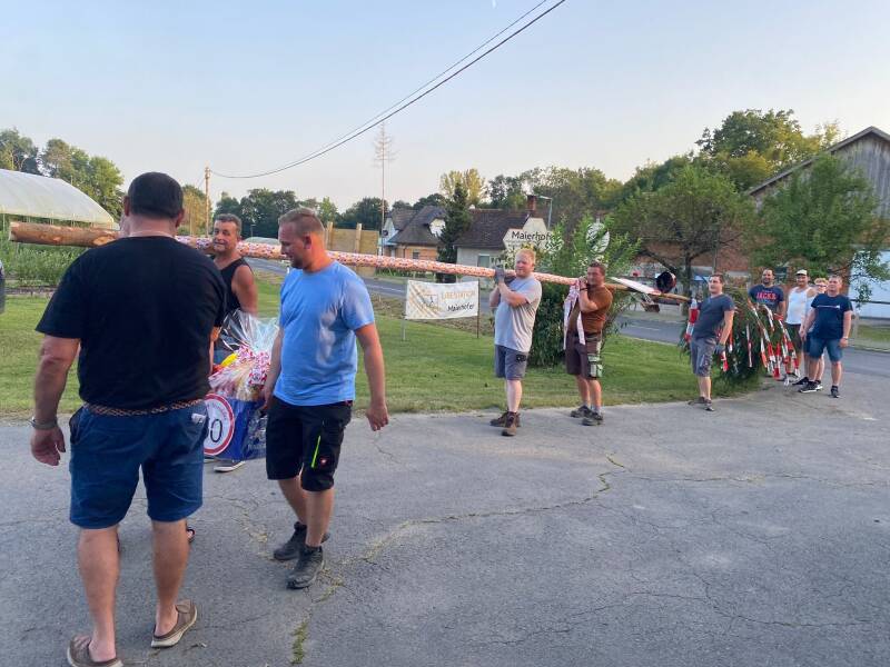Nach dem Aufstellen des Baumes und der Übergabe des Geschenks wurden wir zum gemütlichen Zusammensitzen mit Jause und kühlen Getränken eingeladen! Danke lieber Christian für die Gastfreundschaft und Alles Gute für die nächsten 50 Jahre!