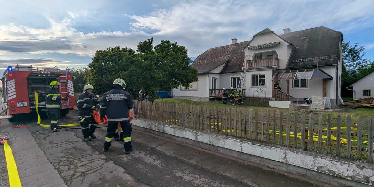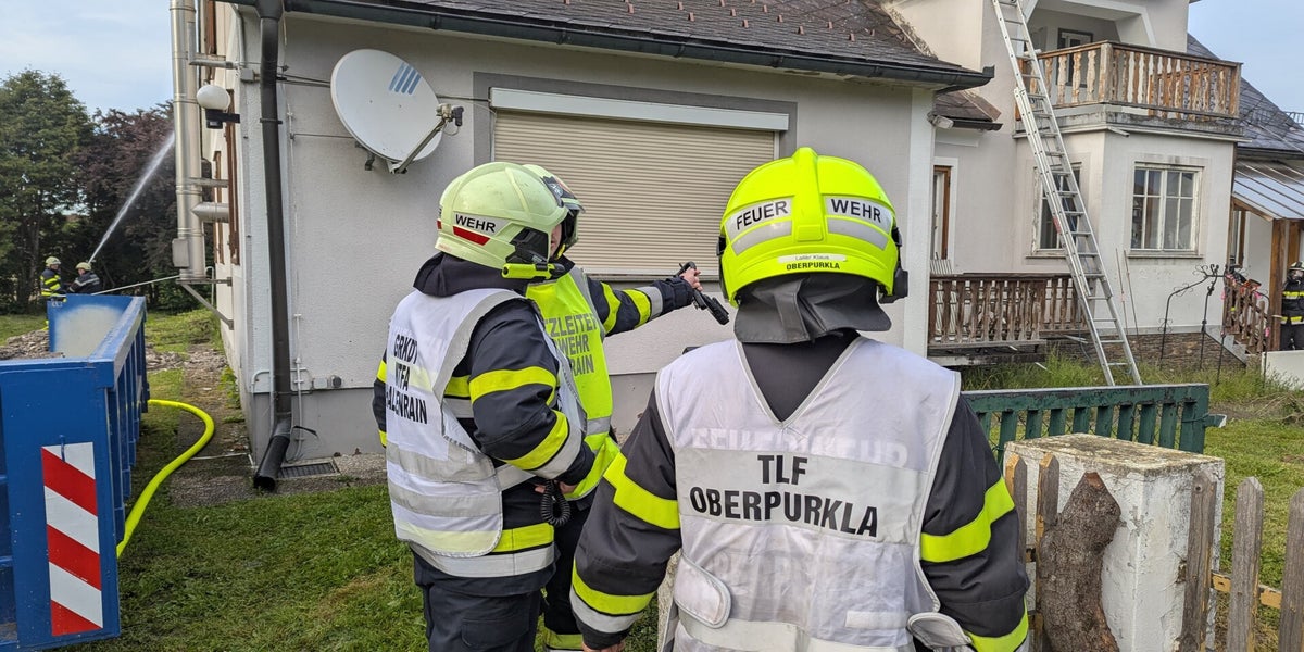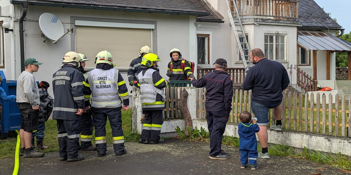 Bei der Erkundung der Lage stellte Einsatzleiter LM Alexander Platzer fest, dass zwei Personen im Obergeschoß am Balkon bzw. beim Fenster auf ihre Rettung warteten und die weiteren 4 Personen im Gebäude vermisst wurden. Sofort wurde eine Leiterrettung vorbereitet, und kurz darauf rückte der Atemschutztrupp der FF Oberpurkla ins Gebäude ab. Die FF Dietzen baute eine Zubringleitung von einem Löschwasserbehälter auf. Nachdem die ersten Personen ins Freie gebracht waren, rückte der Atemschutztrupp der FF Halbenrain in das Brandobjekt ab und führte zwei weitere Menschenrettungen durch. Nach dem "Brand aus" wurde das Objekt mit dem Druckbelüfter rauchfrei gemacht.