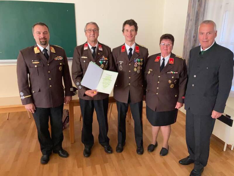 HBI Brigitta Krischan konnte neben den Anwesenden Kameraden auch Bereichsfeuerwehrkommandant OBR Volker Hanny und Bürgermeister Dietmar Tschiggerl begrüßen. Nachdem die Berichte über das vergangene Besondere Jahr 2020 vorgetragen waren, wurden Kameraden befördert und verdiente Mitglieder ausgezeichnet. HBM Manfred Krischan wurde für 40 jährige und HFM Raimund Neuhold für 50 jährige Tätigkeit bei der FF Halbenrain ausgezeichnet. BM Siegfried Kotzbeck bekam von Land Steiermark das Verdienstkreuz in Bronze verliehen.