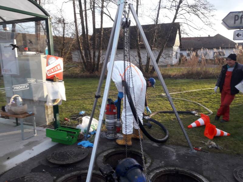 Ausgerechnet am 25. Dezember wurde die FF Halbenrain angefordert, um bei der Durchspülung eines verstopften Kanals zu helfen. HBI Brigitta Krischan und HFM Alois Krauthackl rückten daraufhin mit dem Rüstlöschfahrzeug zu diesem Einsatz aus. Der Hauptkanal von Dietzen zur Kläralage Halbenrain war nach einem Pumpendefekt verstopft. Seitens der FF Halbenrain wurde der Kanalinhalt mit 4000 Liter Wasser verdünnt. Ebenfalls anwesend war der Spülwagen der Fa. Schischek sowie zwei Gemeindearbeiter mit Traktor und Bus.