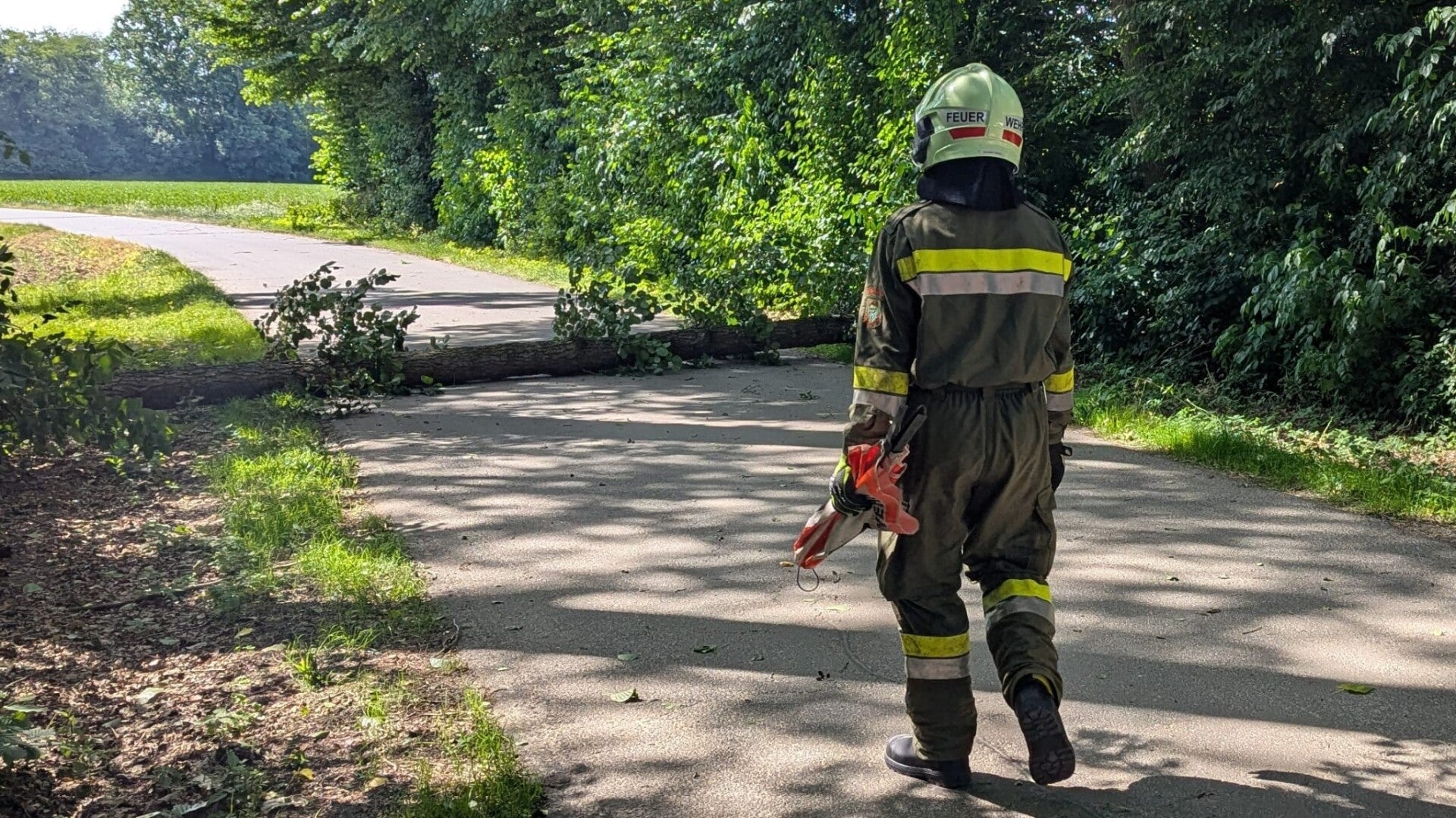Auf der Austraße blockierte ein umgestürzter Baum die Fahrbahn. Die Kameraden der der FF Halbenrain konnten die Straße rasch wieder frei machen.