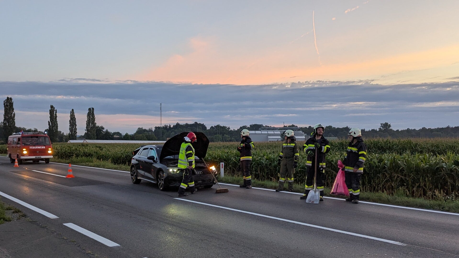 Zu einer Fahrzeugbergung nach einer Kollision zwischen einem PKW und einem Wildschwein wurde die FF Halbenrain am 24. Juli um 05:04 Uhr mittels Sirene alarmiert. Die eingesetzten Kameraden sicherten die Unfallstelle ab, säuberten die Fahrbahn und stellten den PKW auf einem nahegelegenen Parkplatz ab. Während des Einsatzes war die B69 zwischen Halbenrain und Dornau nur einseitig befahrbar.